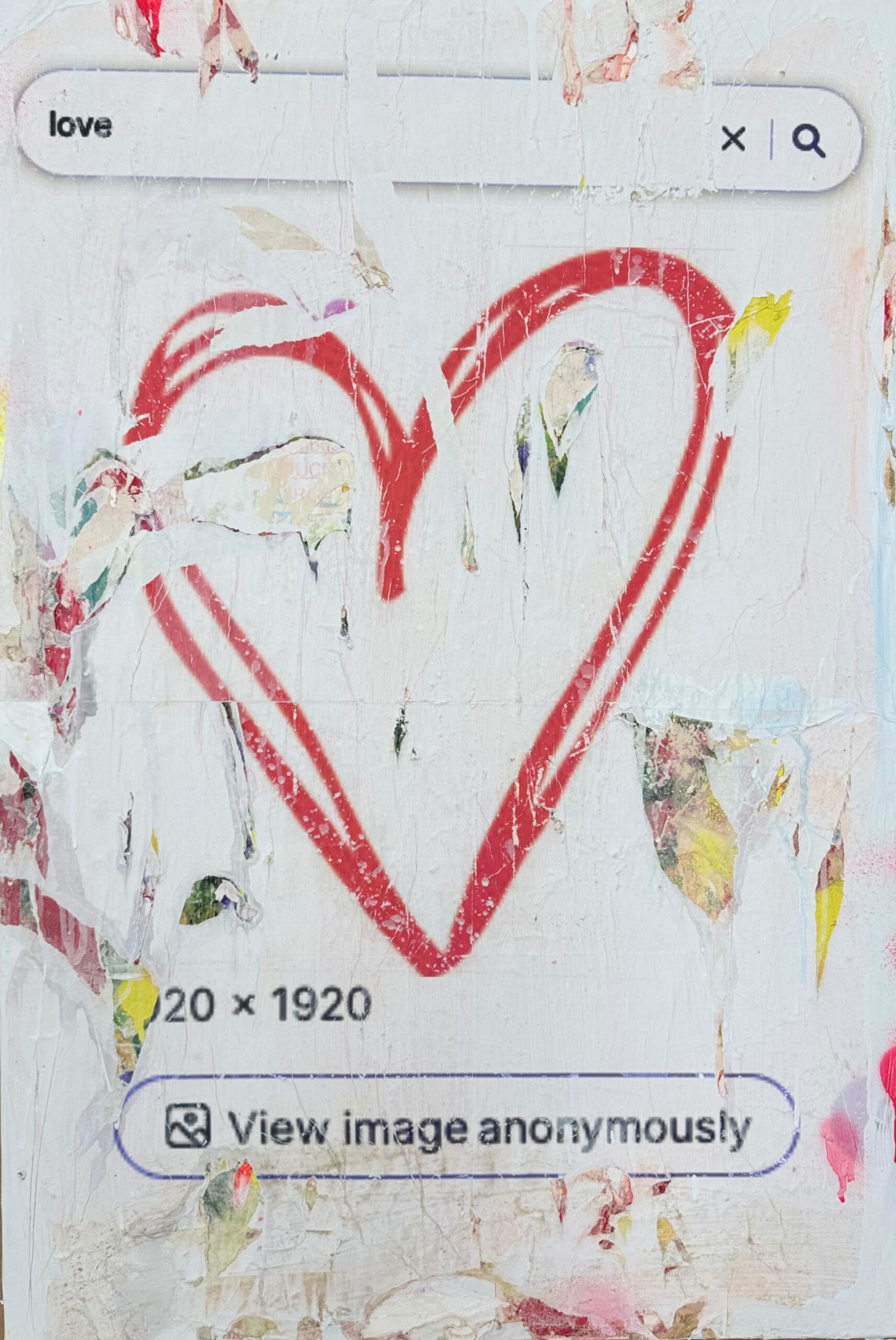 mixed media (paper, printed image, acrylic, coffee, spray paint)